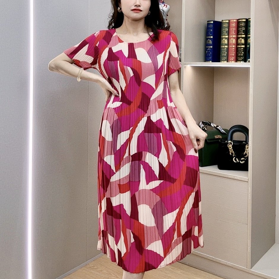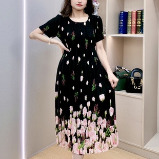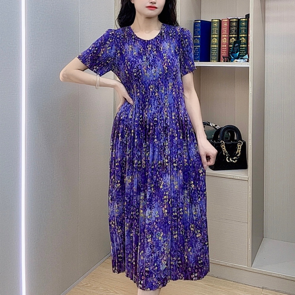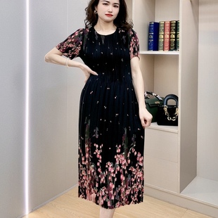 100 宽松显瘦大码 149号 褶皱圆领连衣裙短袖 中年女装 夏季