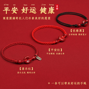 马年本命年新款 红绳纯银手链女情侣平安扣脚链和田玉转运珠红手绳