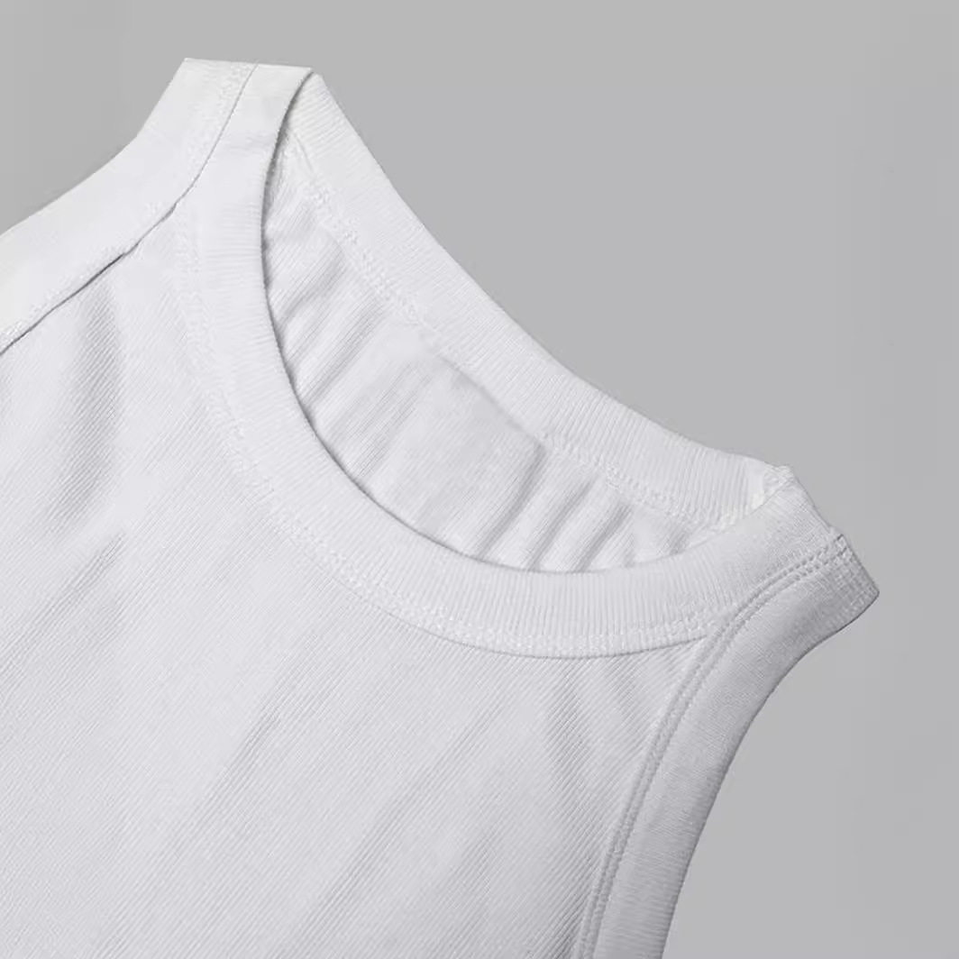 Neck Round Ribbed Tank Summer 纯色圆领夏季 Top 背心女Solid