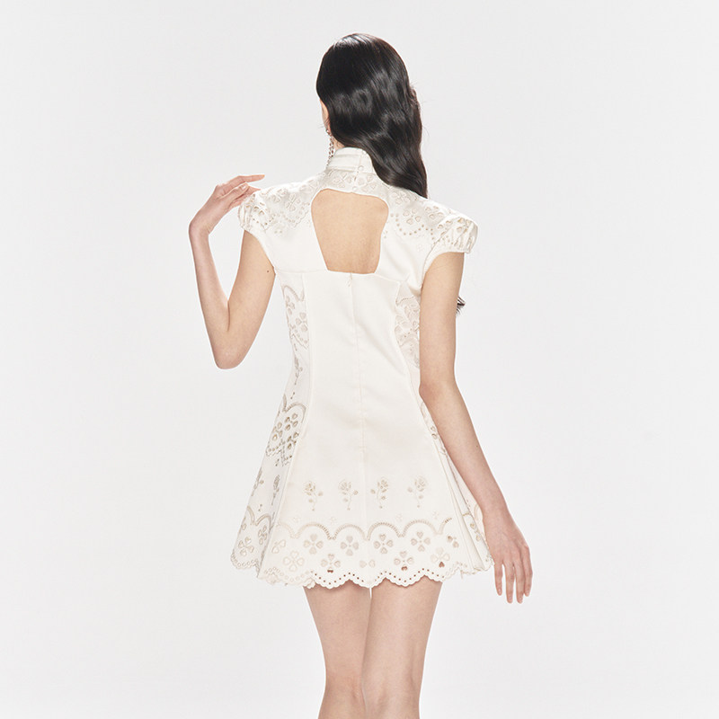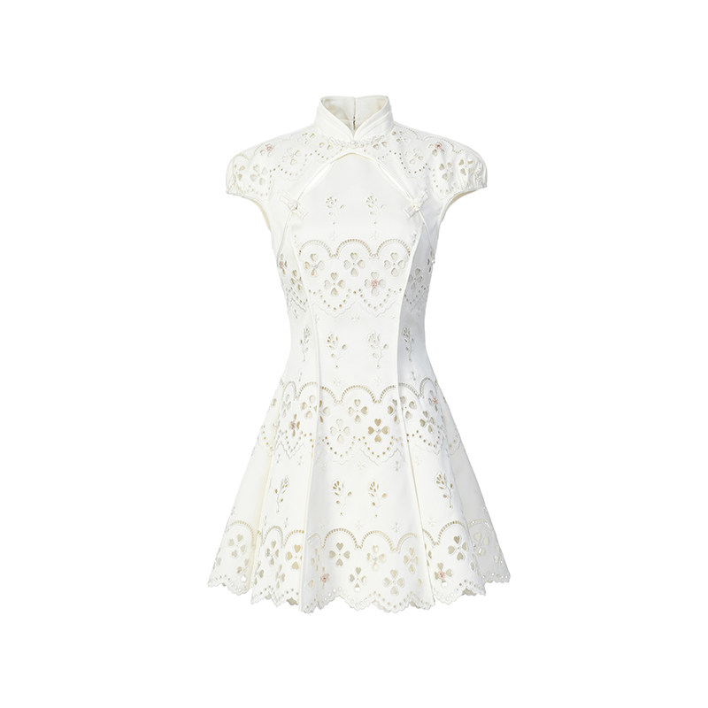 收腰连衣裙 lefame拉飞姆马德拉刺绣镂空中式 明星同款