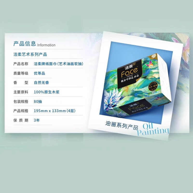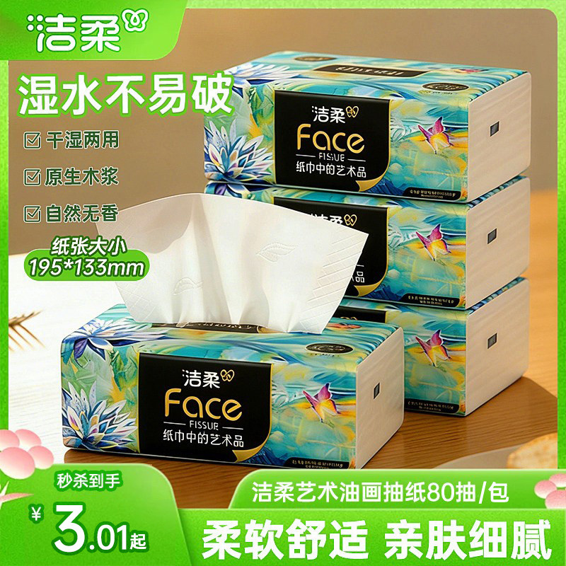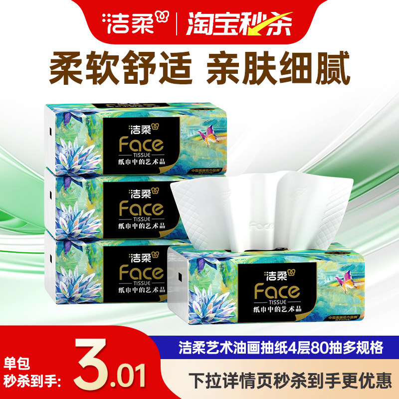 洁柔艺术油画抽纸4层80抽纸巾家用面巾纸卫生纸家用便携实惠装