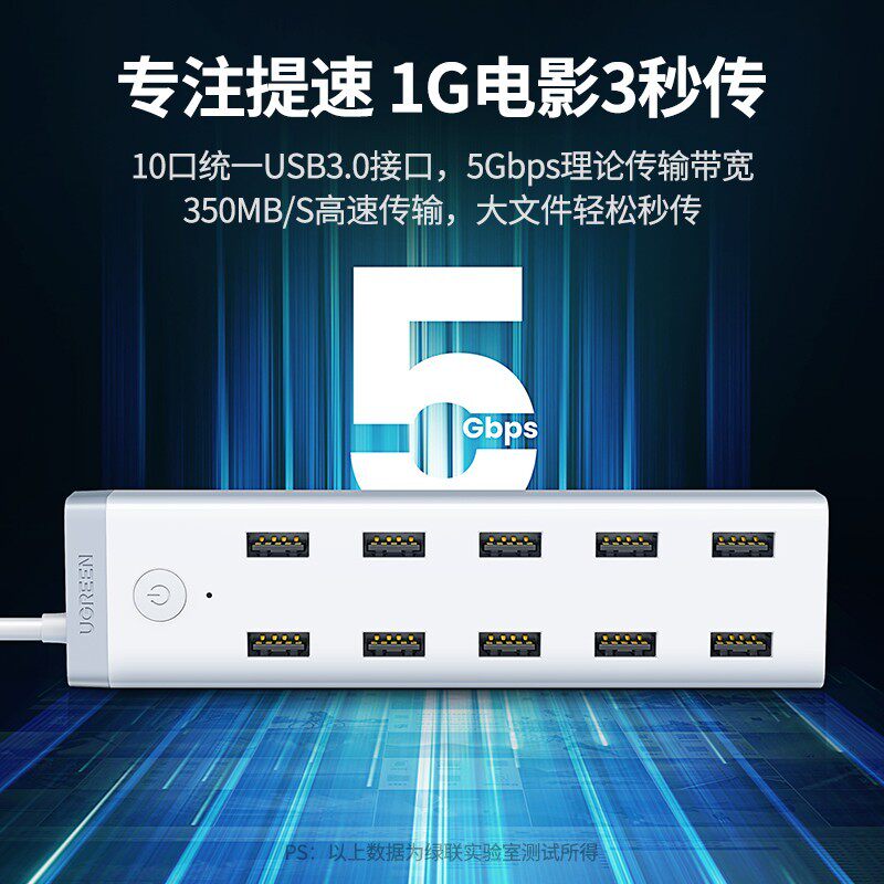 20482 HUB带电源CM421 绿联USB3.0分配器集线器一1分10七 10口USB