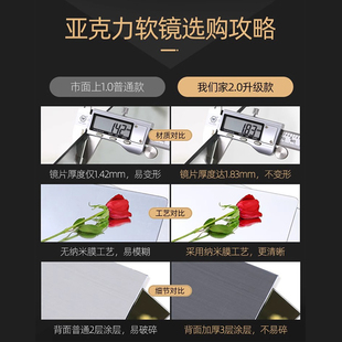 亚克力贴墙自粘软镜子高清浴室镜家用防爆免打孔贴柜门全身穿衣镜