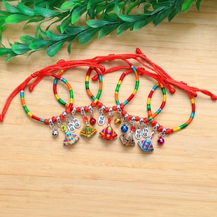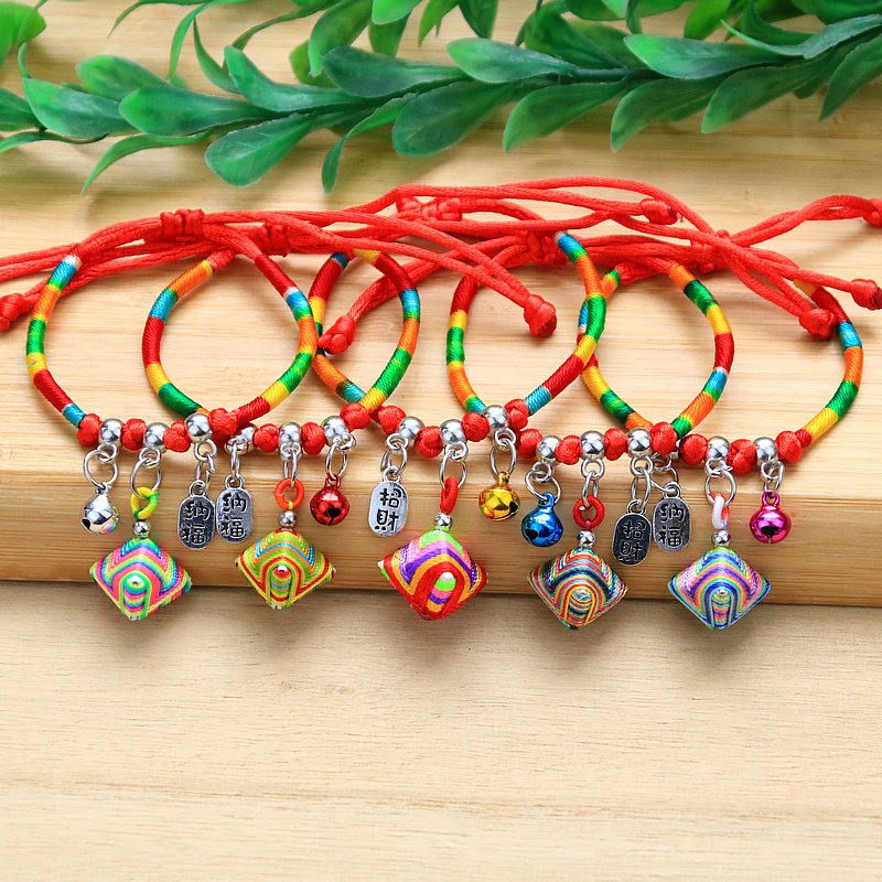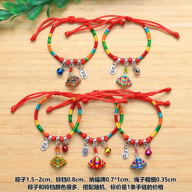 端午节民族风彩色铃铛纳福粽子香包手绳 丝线粽子绕彩线五彩绳手