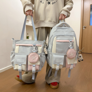 2025新款 小众设计双肩包女百搭ins学生书包背包电脑包补课单肩包