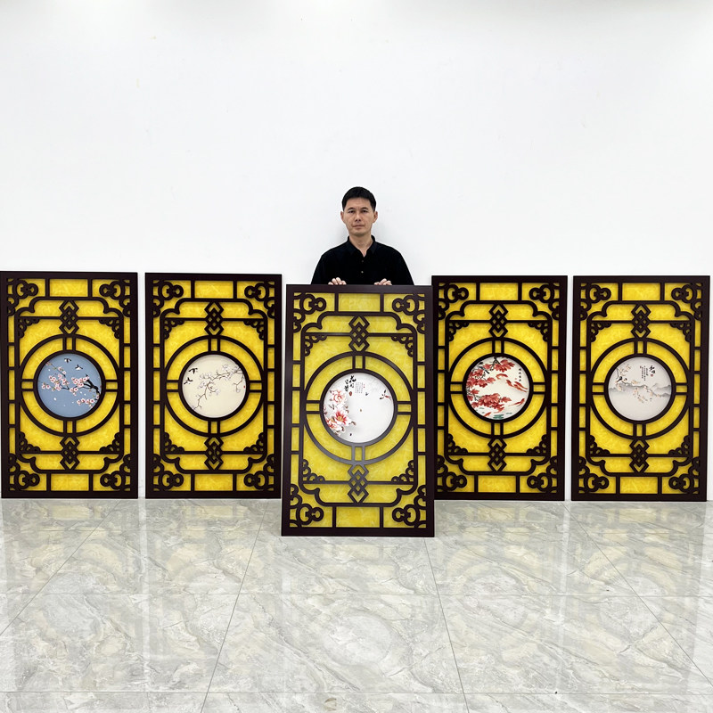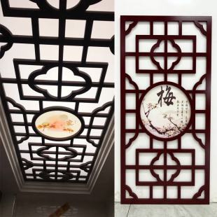 玄关中式 饰板花格窗户屏风 镂空雕花板pvc仿古镂空花格复古吊顶装