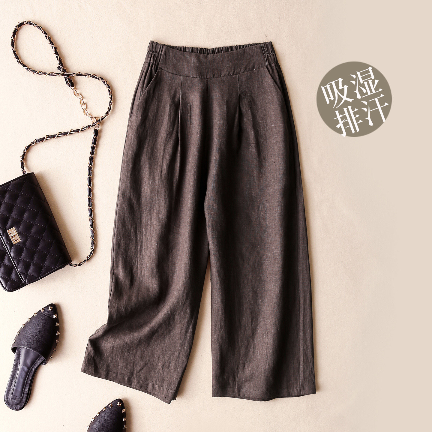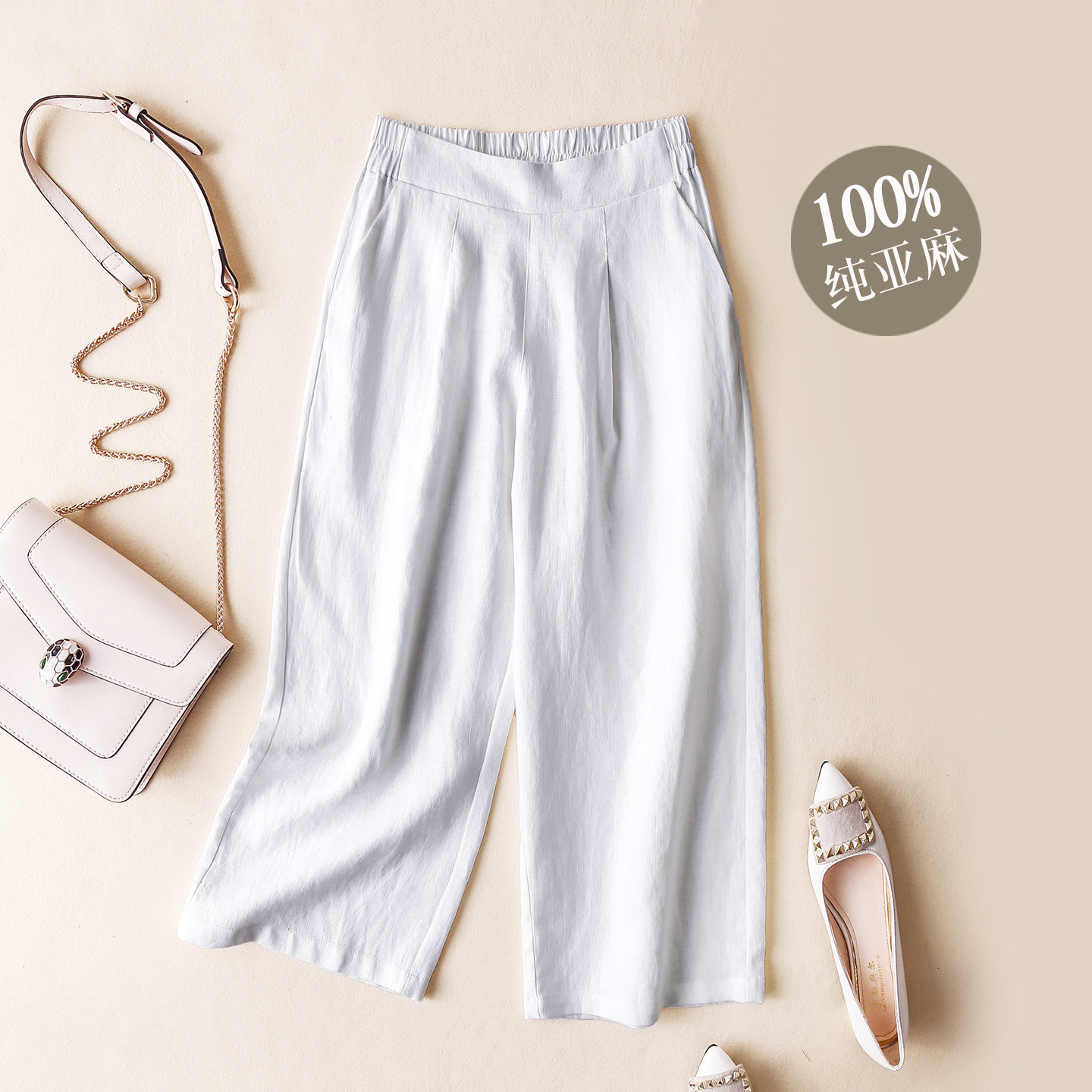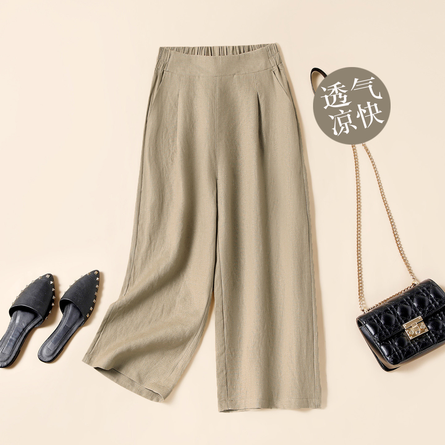 休闲中裤 显瘦垂感大码 子 女夏高腰棉麻宽松直筒七分裤 亚麻阔腿裤