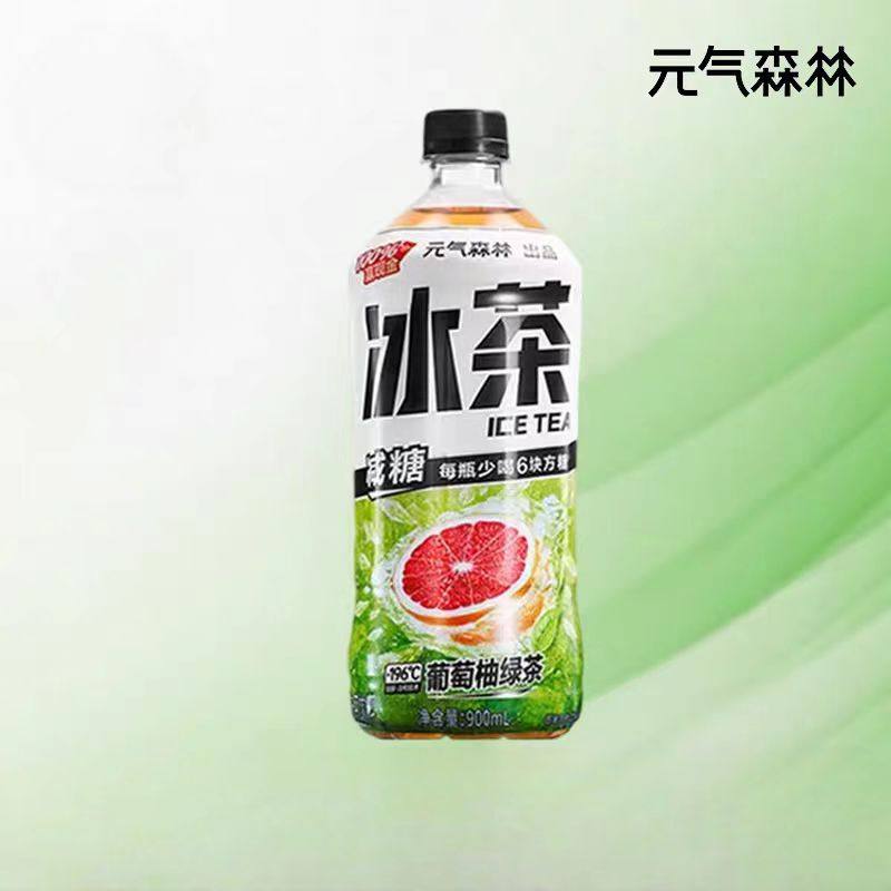 25年元 减糖葡萄柚绿茶白桃茉莉饮料多口味 气森林冰茶900ml5瓶装