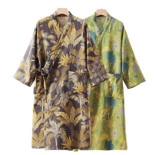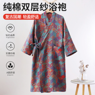 女式 情侣纯棉双层纱布浴袍全棉男士 睡衣家居服吸水浴衣 薄款 四季