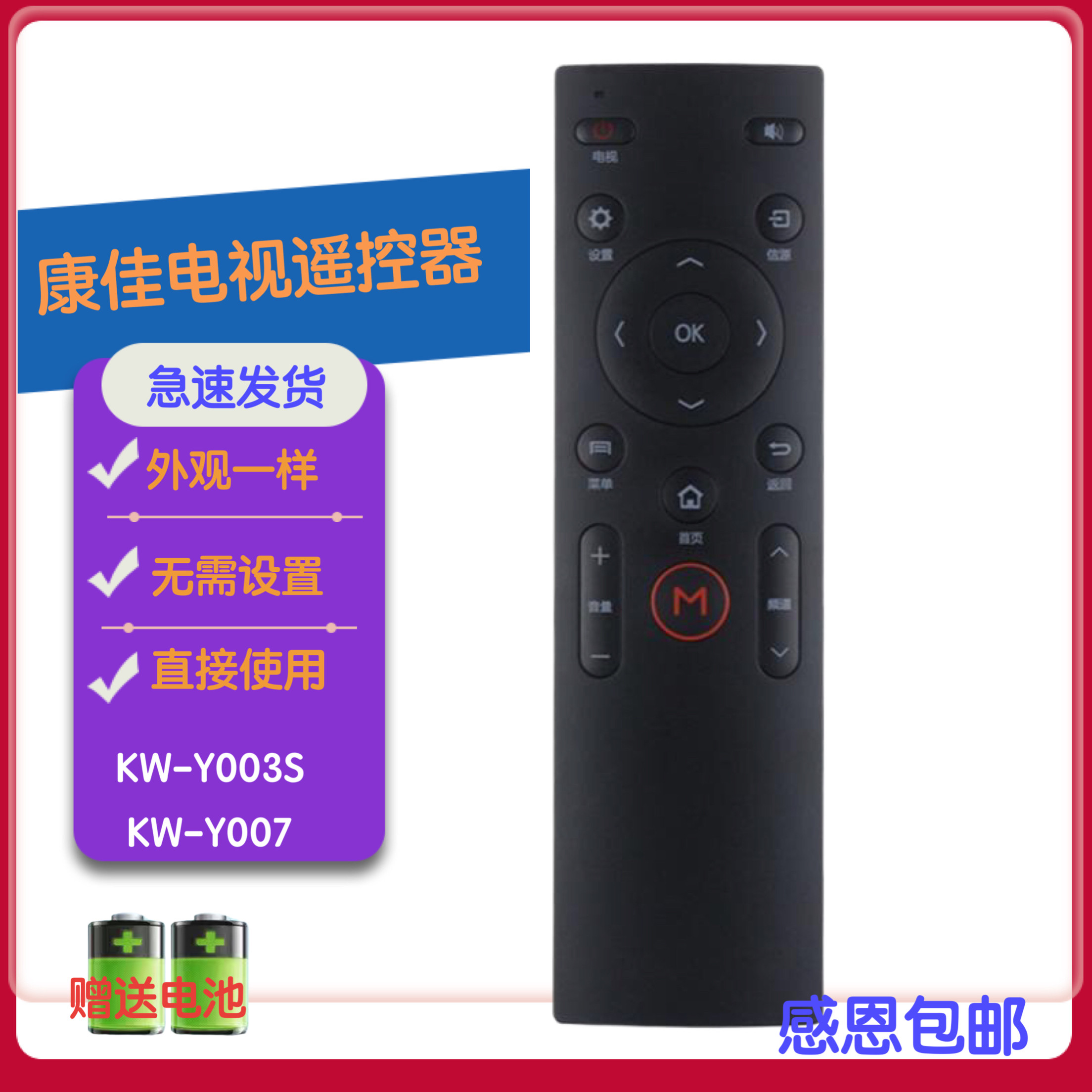 康佳液晶电视机遥控器KW LED48UC2 Y006 T55U LED55UC2 T43U 适用