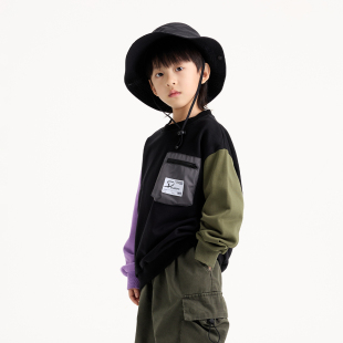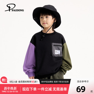 撞色拼接袖 秋季 男孩休闲卫衣宽松洋气潮 儿童上衣2025新款 派町童装