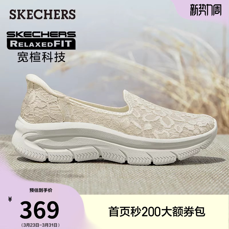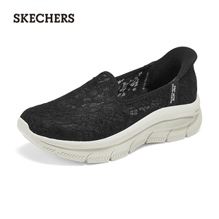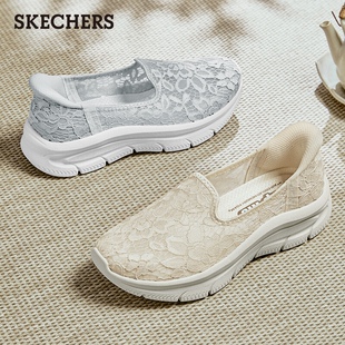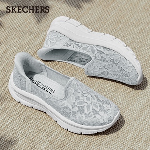 透气浅口单鞋 斯凯奇闪穿鞋 一脚蹬健步鞋 宽脚舒适蕾丝休闲鞋 女鞋