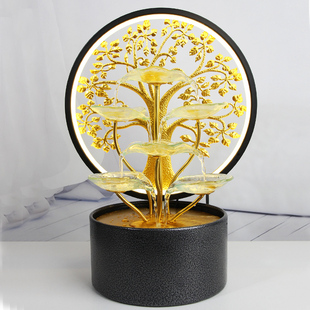 创意陶瓷流水摆件循环水招财客厅小型办公桌面装 饰造景风水轮礼物