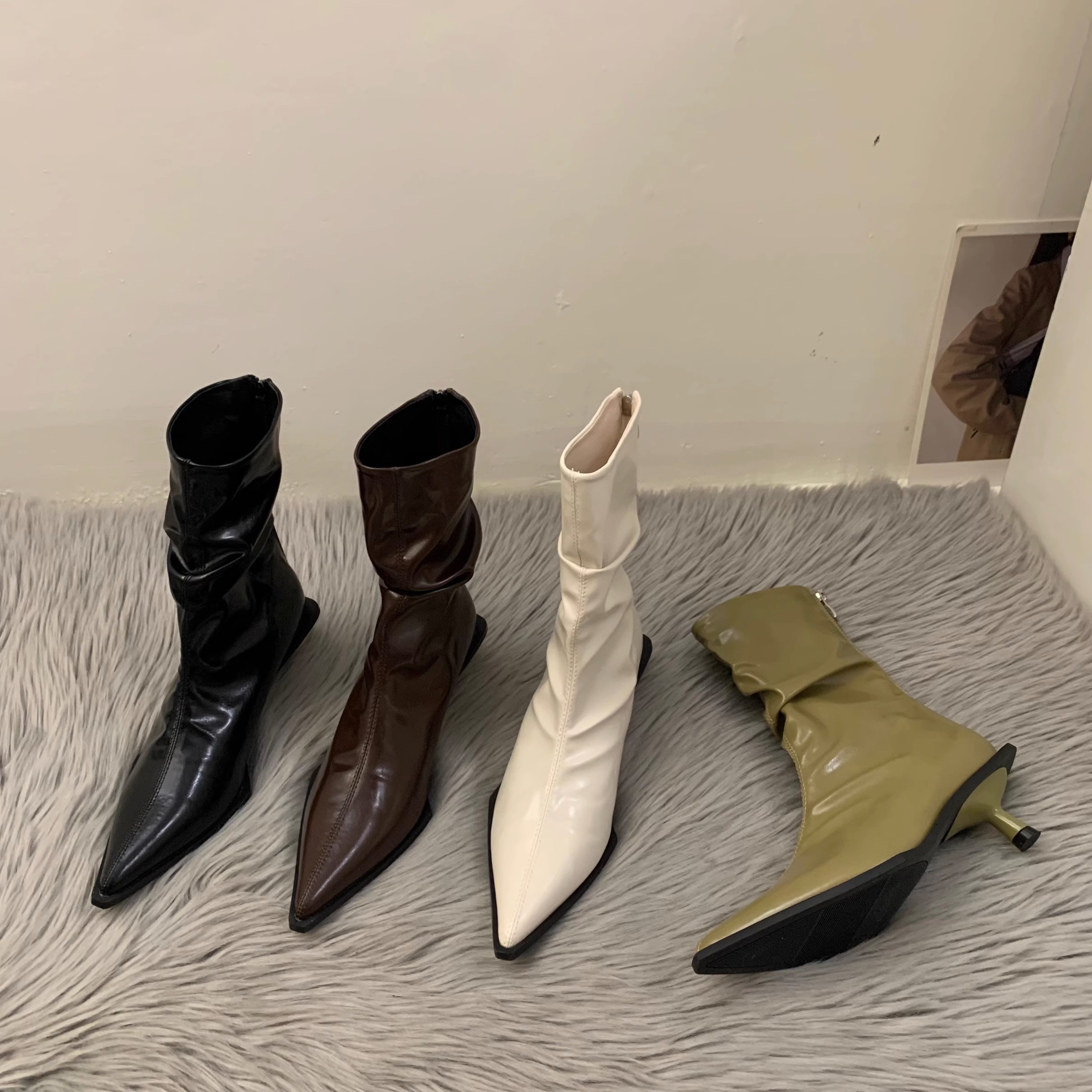针织拼接复古短靴女法式 玖熙2025秋冬新款 瘦瘦靴马丁靴 West Nine
