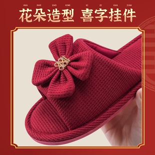 利达妮结婚拖鞋 红色喜庆一对高级感新婚新娘陪嫁婚礼情侣晨袍婚鞋