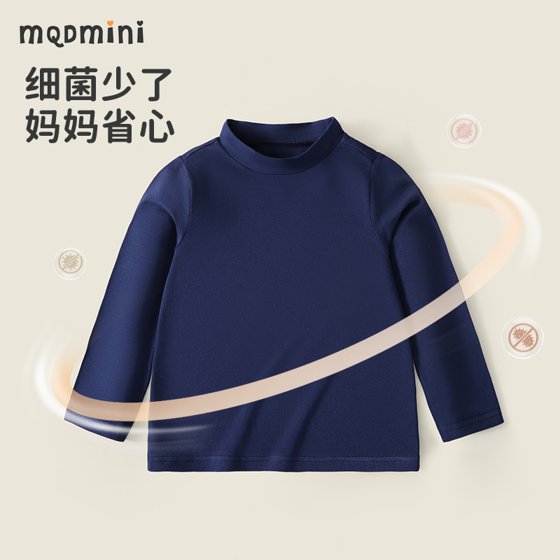 T恤 中小童半高领磨毛内搭儿童上衣男童长袖 宝宝打底衫 羊绒棉秋款