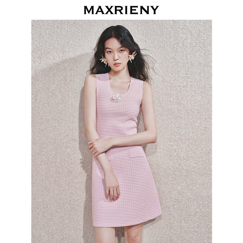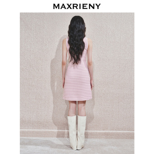 挂脖背心吊带裙子 MAXRIENY华夫格肌理感连衣裙无袖 商场同款