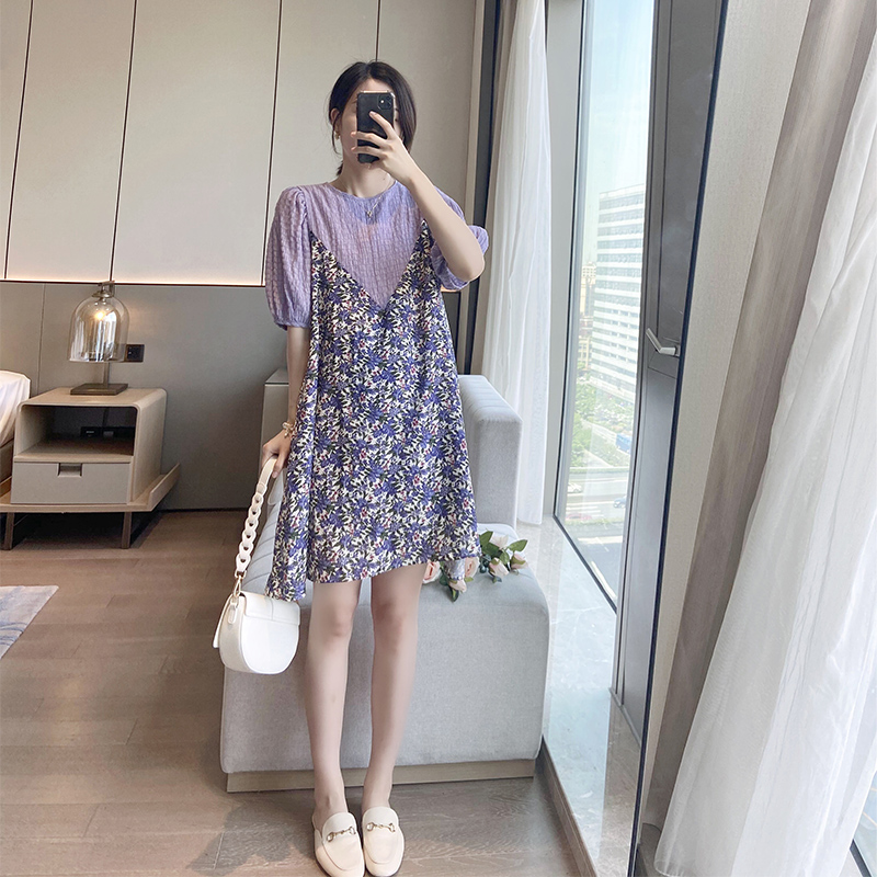 紫色胖mm炸街夏装 显瘦2024女 连衣裙薄减龄碎花雪纺假两件宽松大码