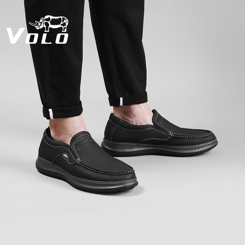 犀牛皮鞋 一脚蹬软底套脚鞋 男款 中年男士 真皮透气春秋休闲鞋 VOLO