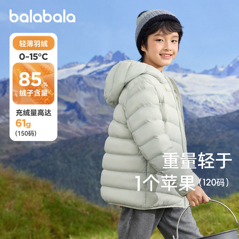 童装 巴拉巴拉儿童羽绒服女童轻薄外套大童排骨服连帽上衣冬装 新款