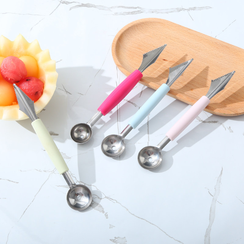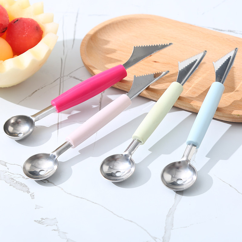 创意双头不锈钢水果挖球器西瓜挖球勺雕花刀切果器拼盘冰淇淋工具