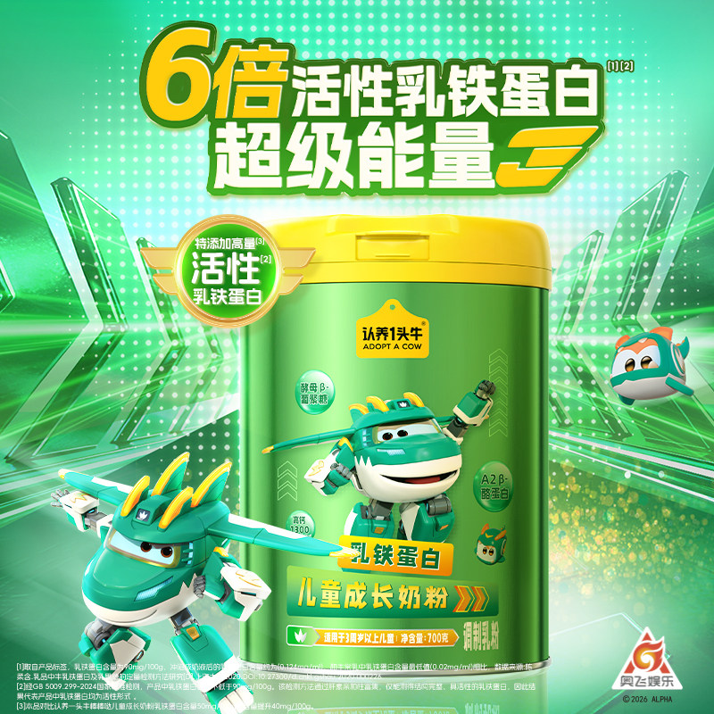 认养一头牛儿童成长奶粉学生青少年益生菌乳铁蛋白 超级飞侠