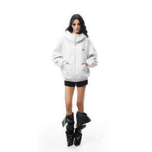 设计感口袋百搭显瘦外套潮 新款 灰色双拉链高领开衫 卫衣女2025秋季