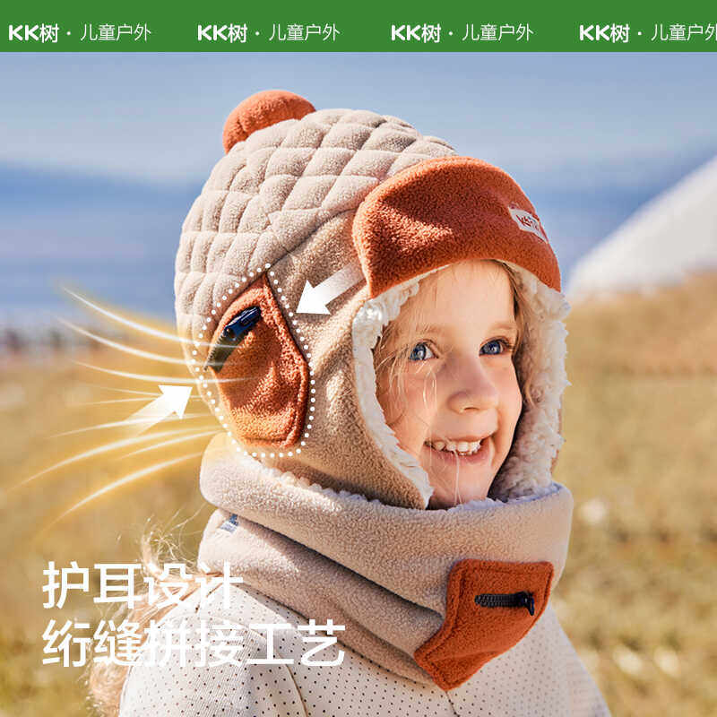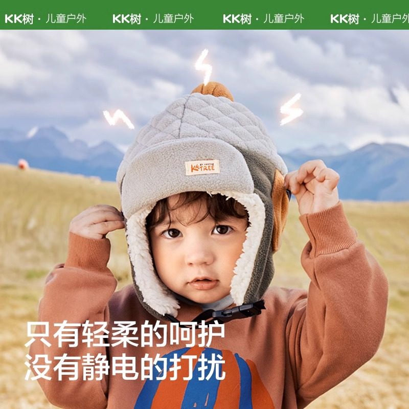 KK树儿童帽子秋冬新款 加绒护耳帽A类男女孩宝宝雷锋帽保暖抗静电