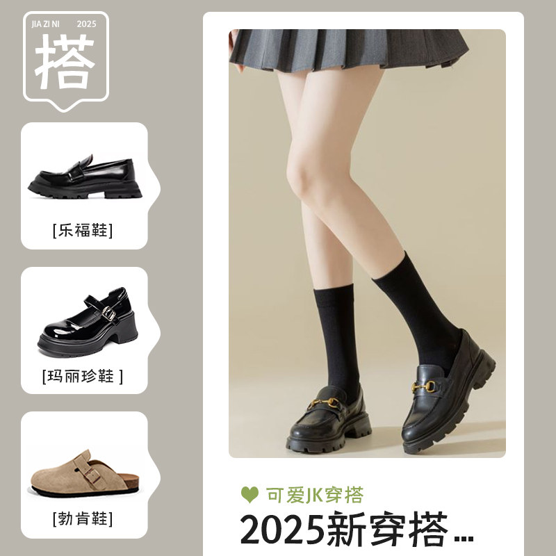 压力袜子女黑色中筒袜小腿袜2025新款 长筒袜长袜过膝袜jk瘦腿秋冬