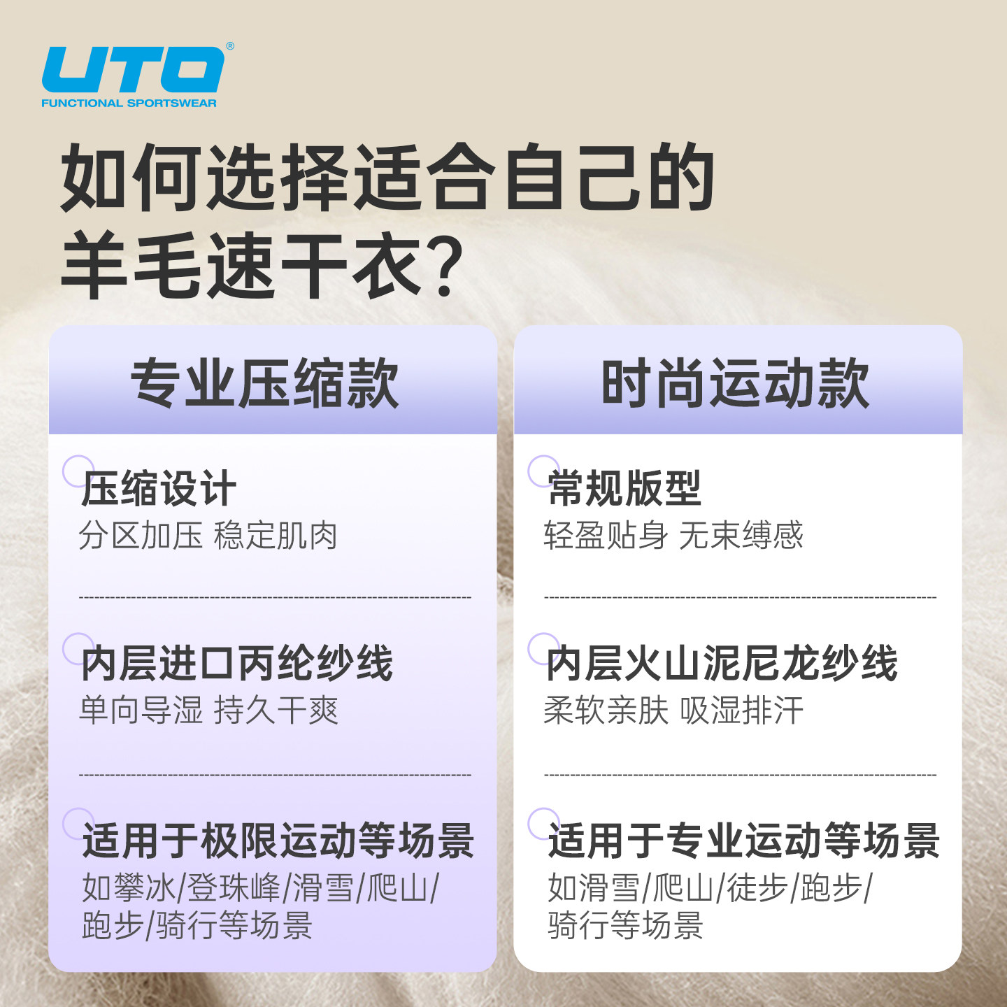 UTO悠途美利奴羊毛速干衣女户外登山徒步滑雪内衣男秋冬保暖打底