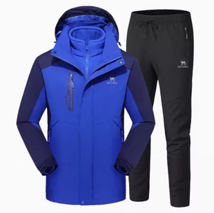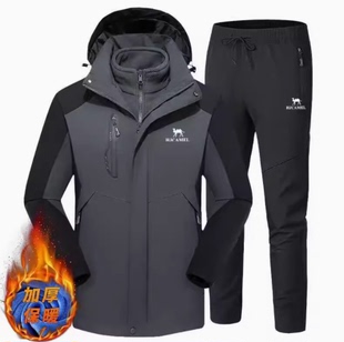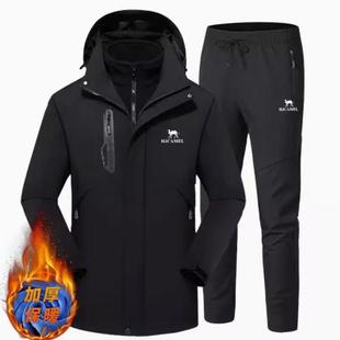 加绒加厚登山服 套装 户外冲锋衣男三合一可拆卸秋冬季 防风防水衣裤