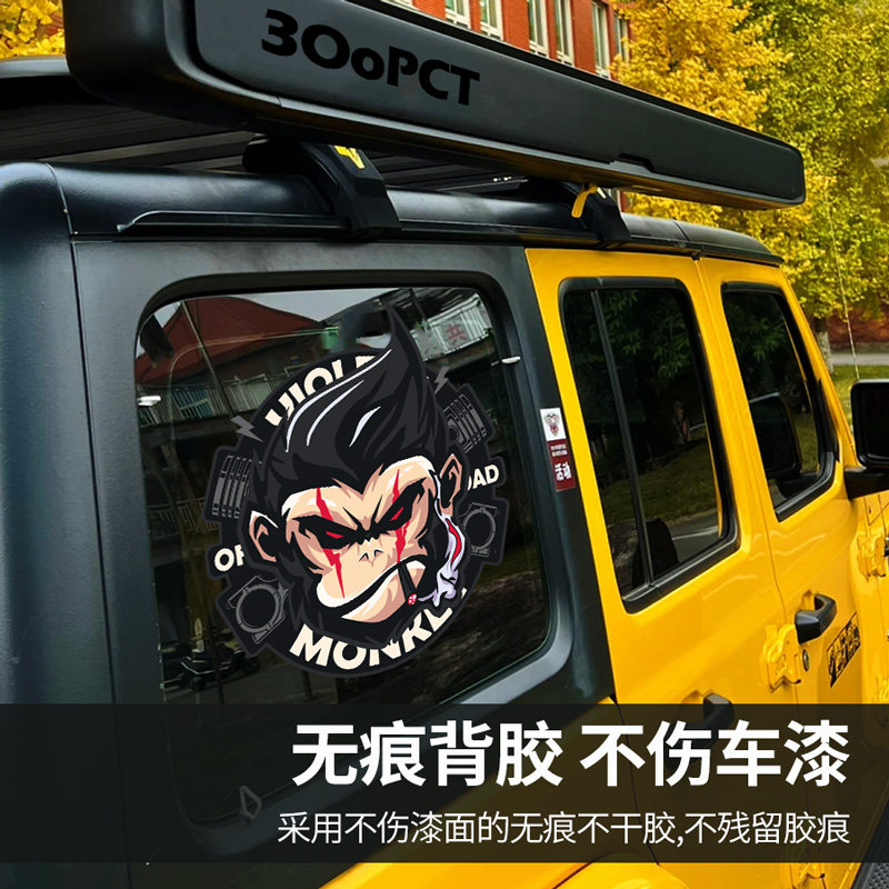 暴力猴子个性 卡通硬派越野防水汽车贴纸牧马人拉花遮划痕车身贴画