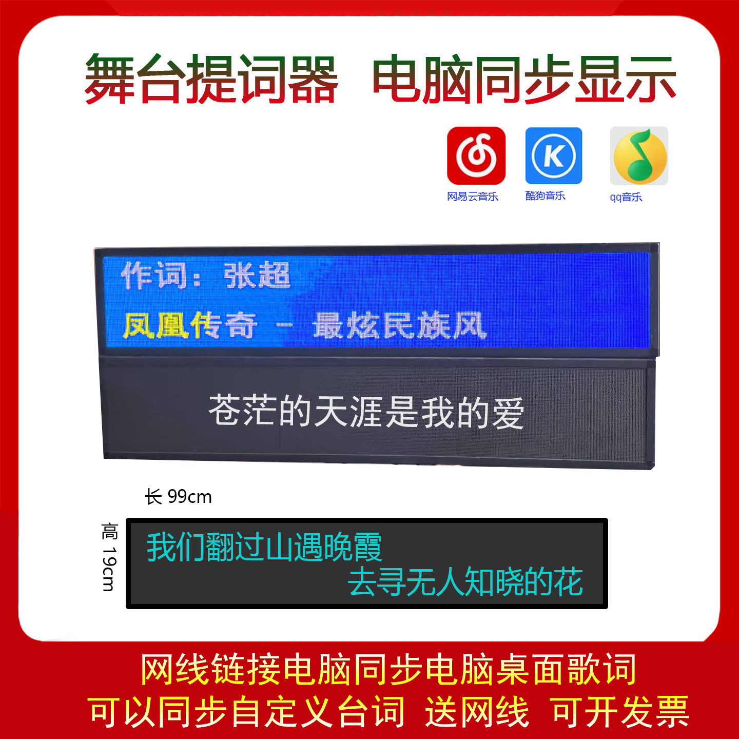 舞台字幕机横屏提词器KTV提词器歌词显示屏支持酷狗QQ唱歌桌面词