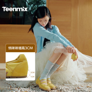 女内增高浅口单鞋 陈都灵同款 天美意果汁软糖运动芭蕾德训玛丽珍鞋