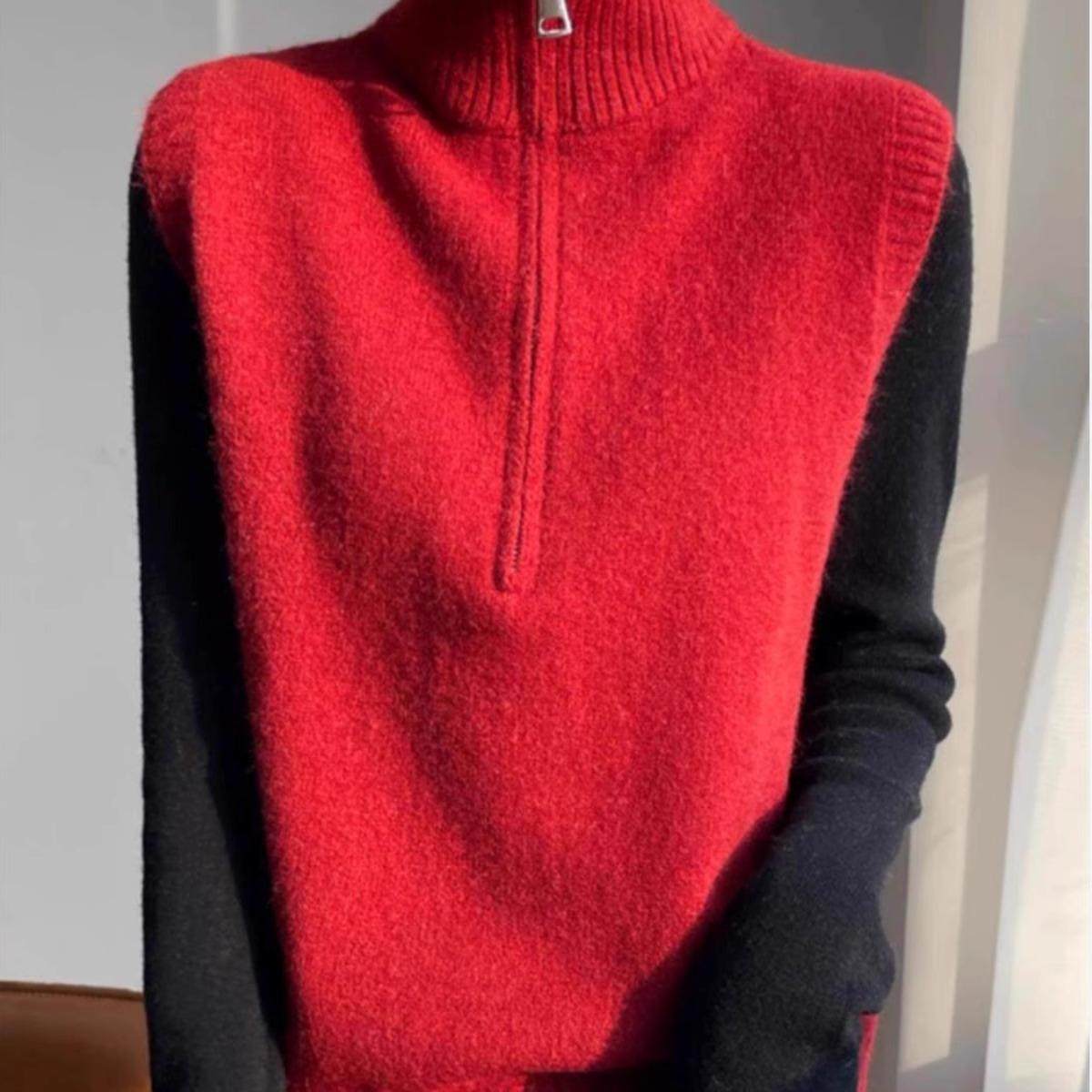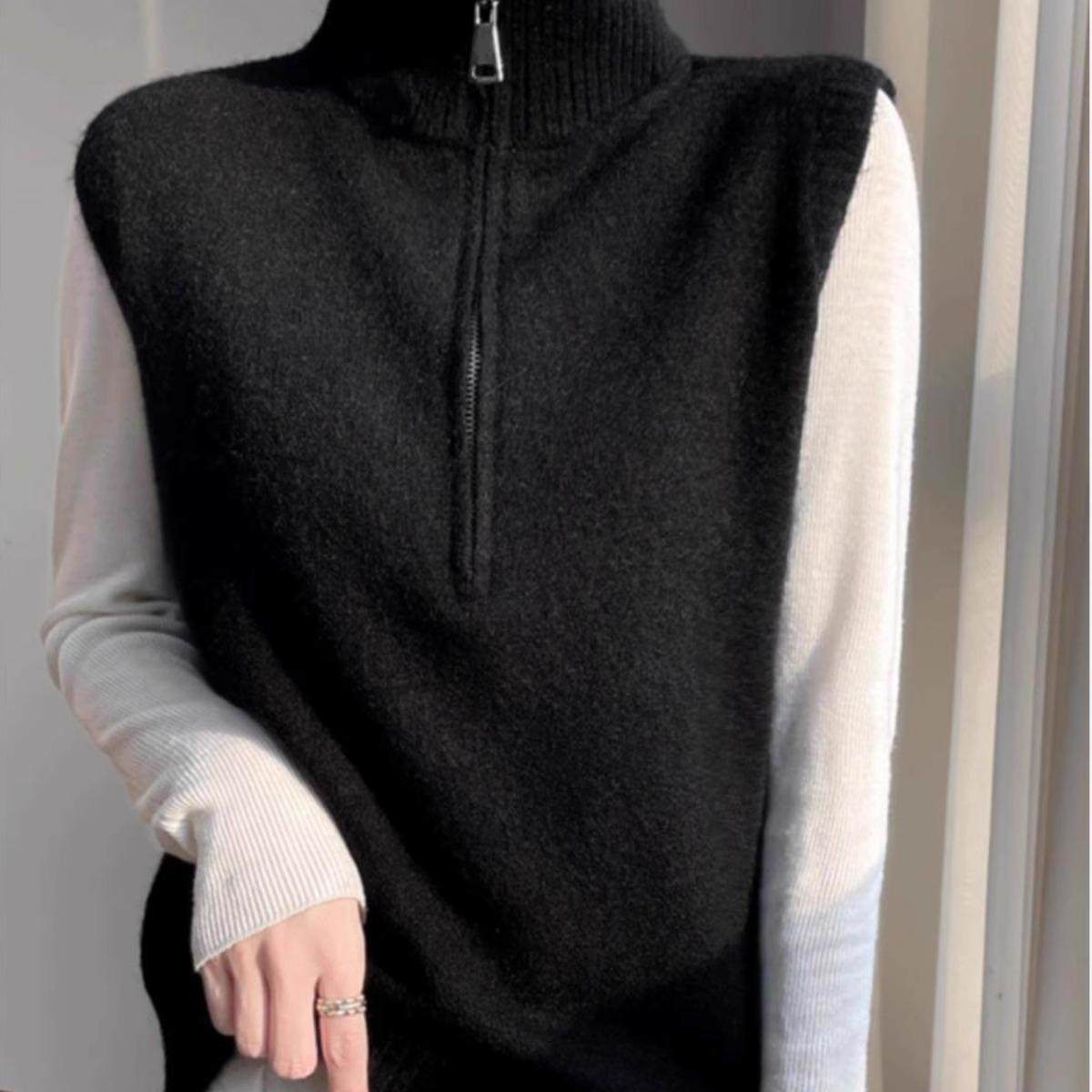 时髦半拉链高领针织马甲休闲毛衣坎肩女百搭保暖洋气无袖 叠穿背心