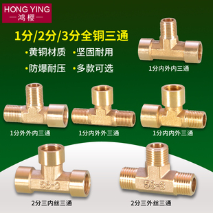 全铜加厚三通接头4分6分1寸内丝外丝一分二配件热水器分水活接头