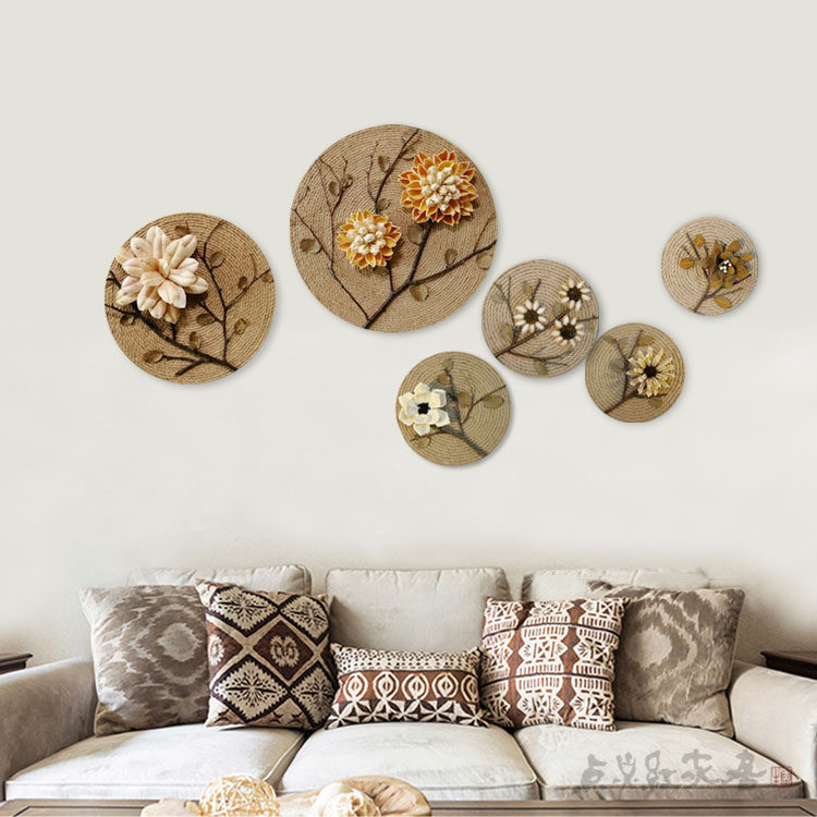 花好月圆东南亚干枝干花麻绳复古怀旧家居民宿装 饰墙饰壁饰挂件