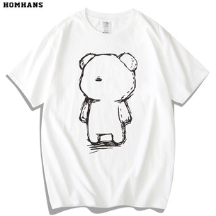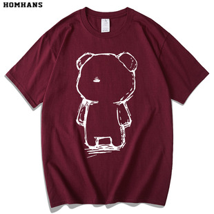T恤潮 情侣宽松短袖 全棉日韩风可爱卡通守望小熊加肥加大码 男女装