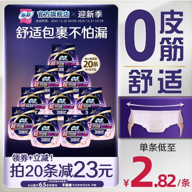 型卫生巾安睡裤 苏菲超熟睡安心裤 0皮筋防漏超薄夜用裤