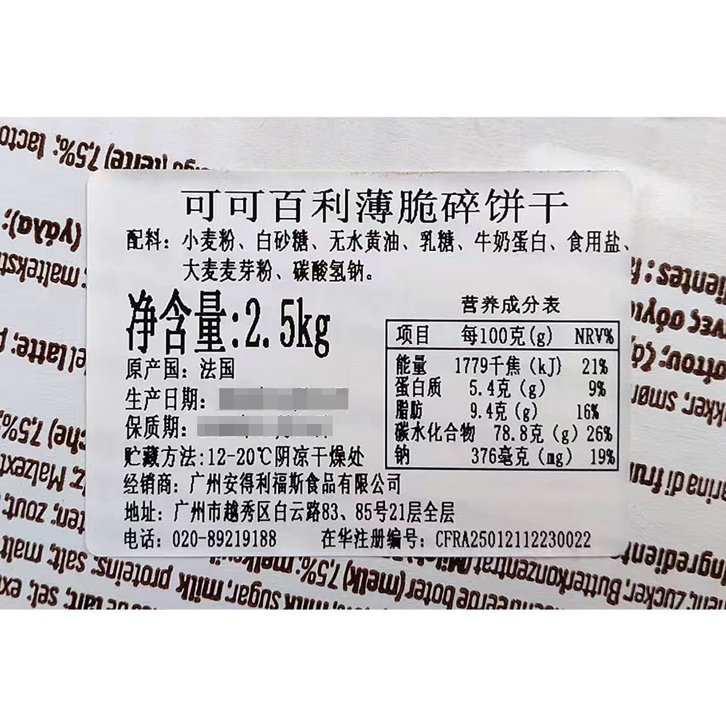 可可百利薄脆片2.5kg 饰碎片木糠杯烘焙 法国进口薄脆碎饼干蛋糕装