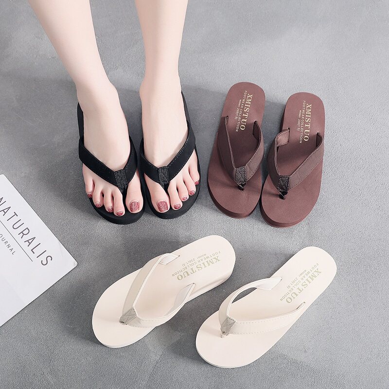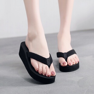 海边凉拖夹脚高跟人字拖 外穿松糕防滑厚底坡跟沙滩鞋 拖鞋 女夏时尚