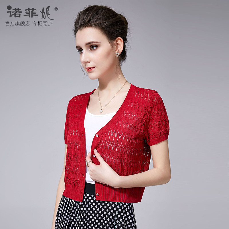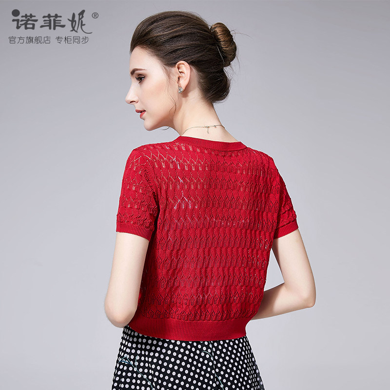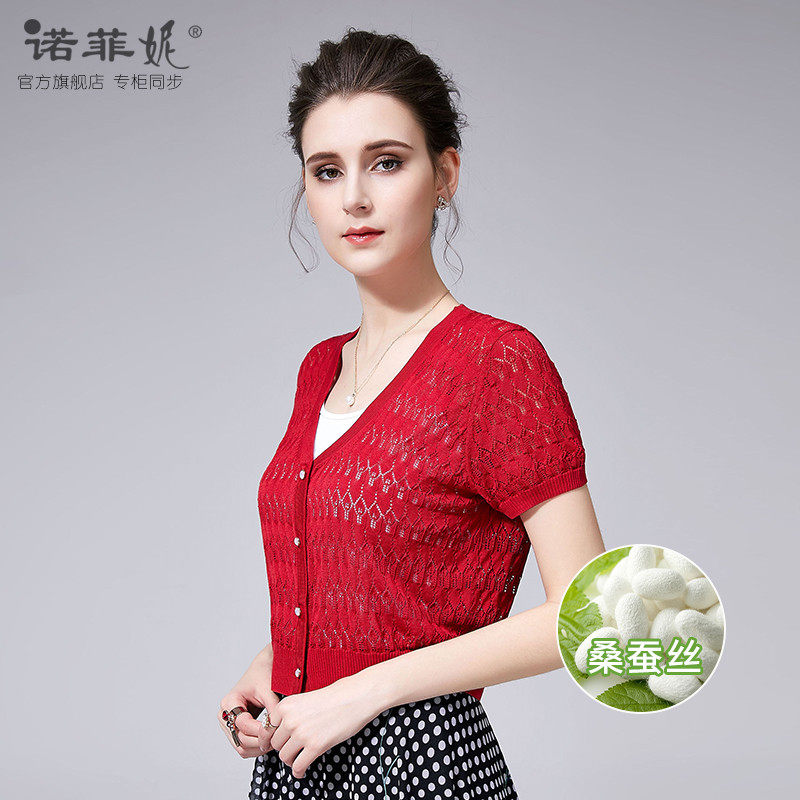 小外套短袖 气质红色真丝针织开衫 百搭披肩上衣 新款 诺菲妮品牌夏装