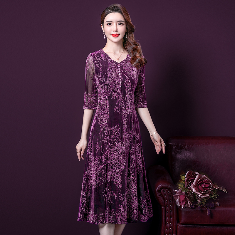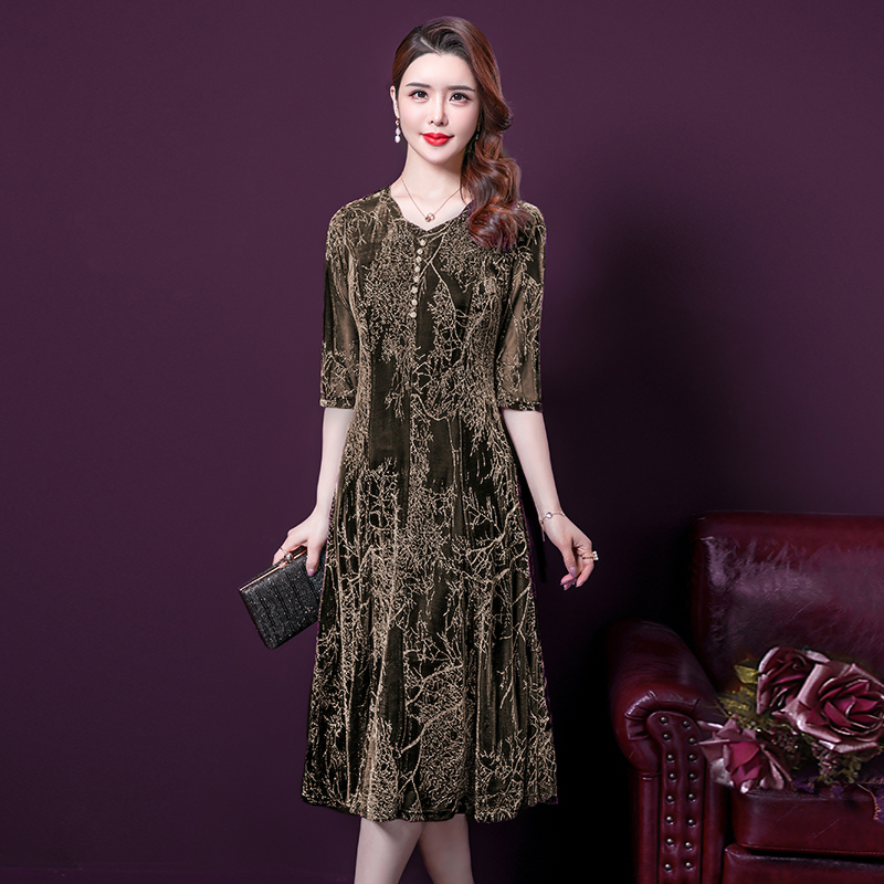 香云纱香云纱真丝连衣裙女春秋新款 宽松桑蚕丝中长裙子 妈妈大码