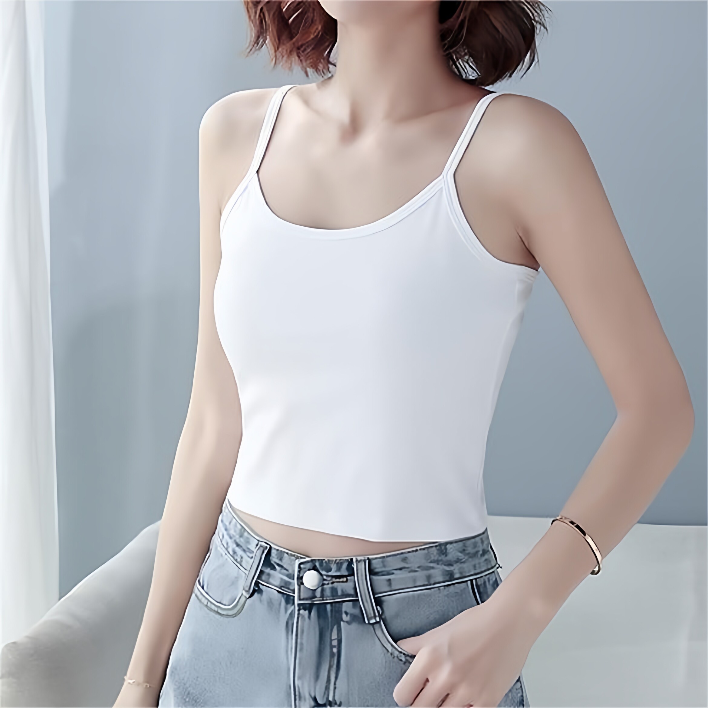 罗纹棉短款 打底衫 小吊带背心女内搭夏季 纯色百搭无袖 新款 白色修身