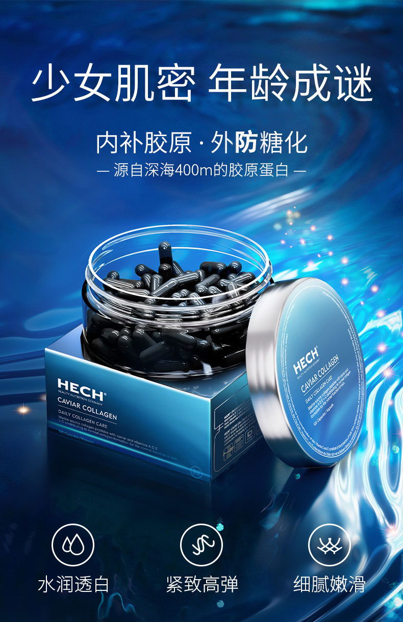 赫熙 120粒 HECH 口服 PUREWOMAN 鱼子酱胶原蛋白肽胶囊 德国