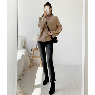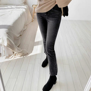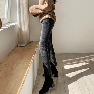 子 加绒高腰宽松显瘦九分直筒烟管裤 烟灰色牛仔裤 女秋冬2025年新款