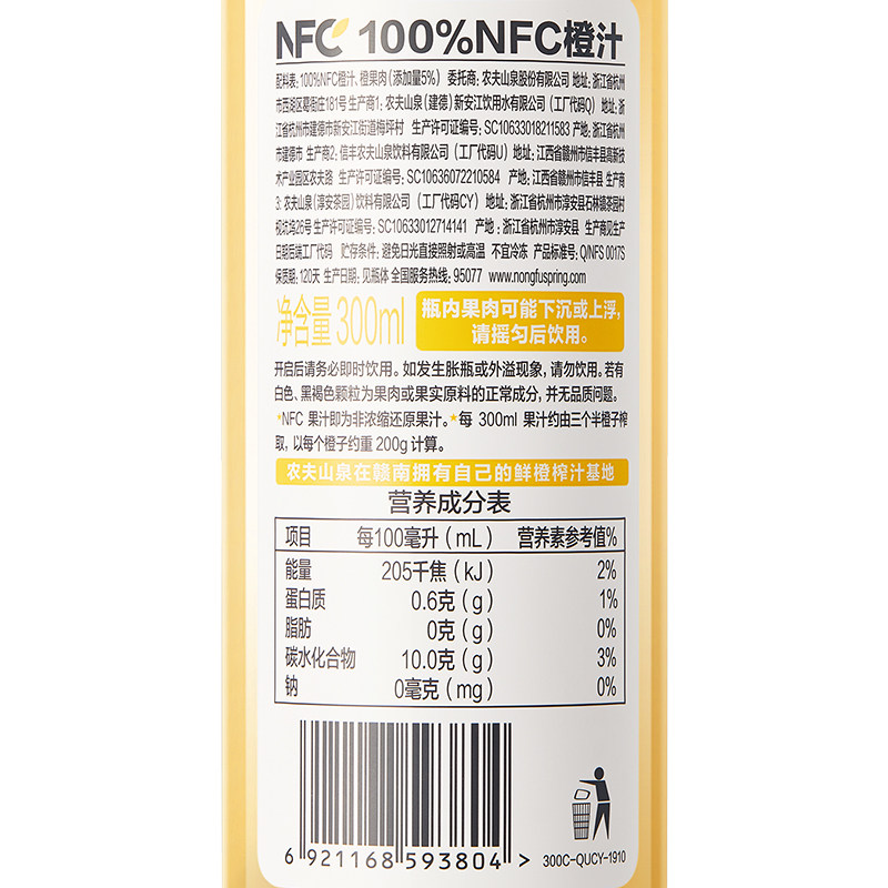 农夫山泉100%NFC橙汁鲜果冷压榨 下拉更优惠