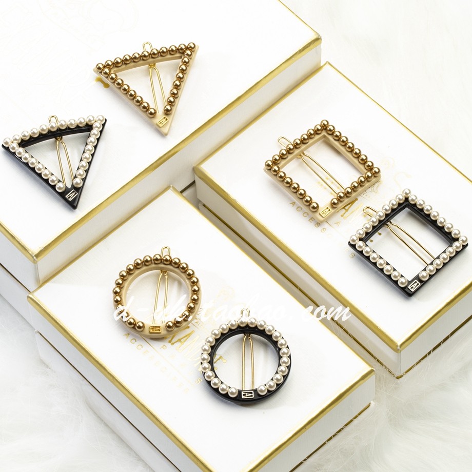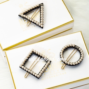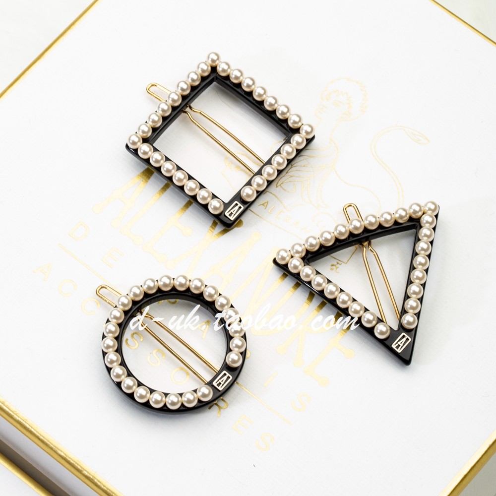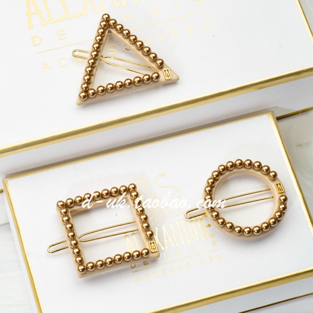 法国亚历山大A P发饰4.5cm几何珍珠边夹 现货