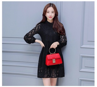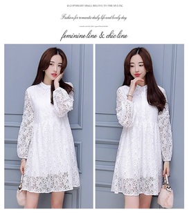 胖mm韩版 春秋冬夏季 大码 蕾丝连衣裙气质灯笼长袖 打底裙子仙女 新款