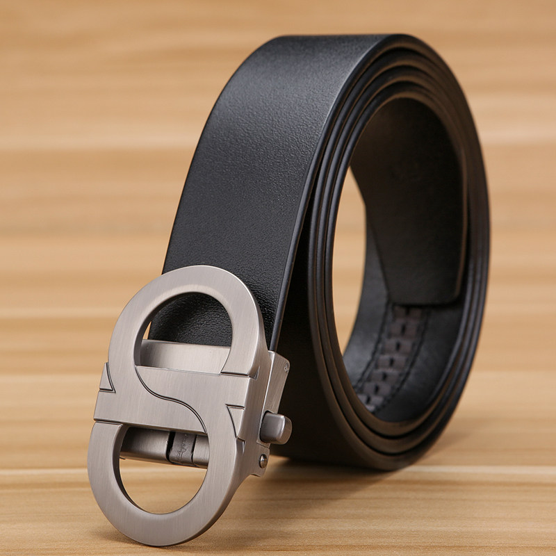 休闲裤 皮带真皮自动扣8子扣头层牛皮青年纯腰带时尚 带 男士 皮隆
